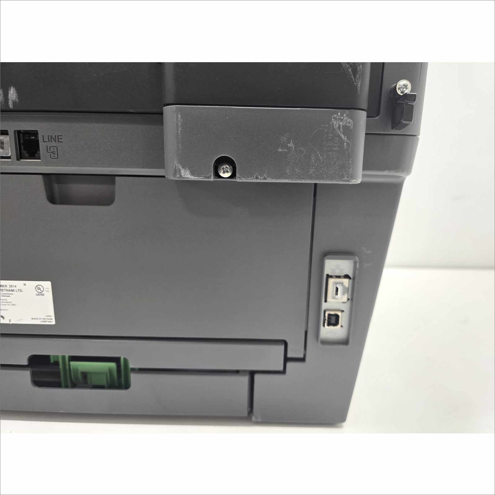 - Physically printer show signs of use such as scratches and scuffing consistent with its age and use.