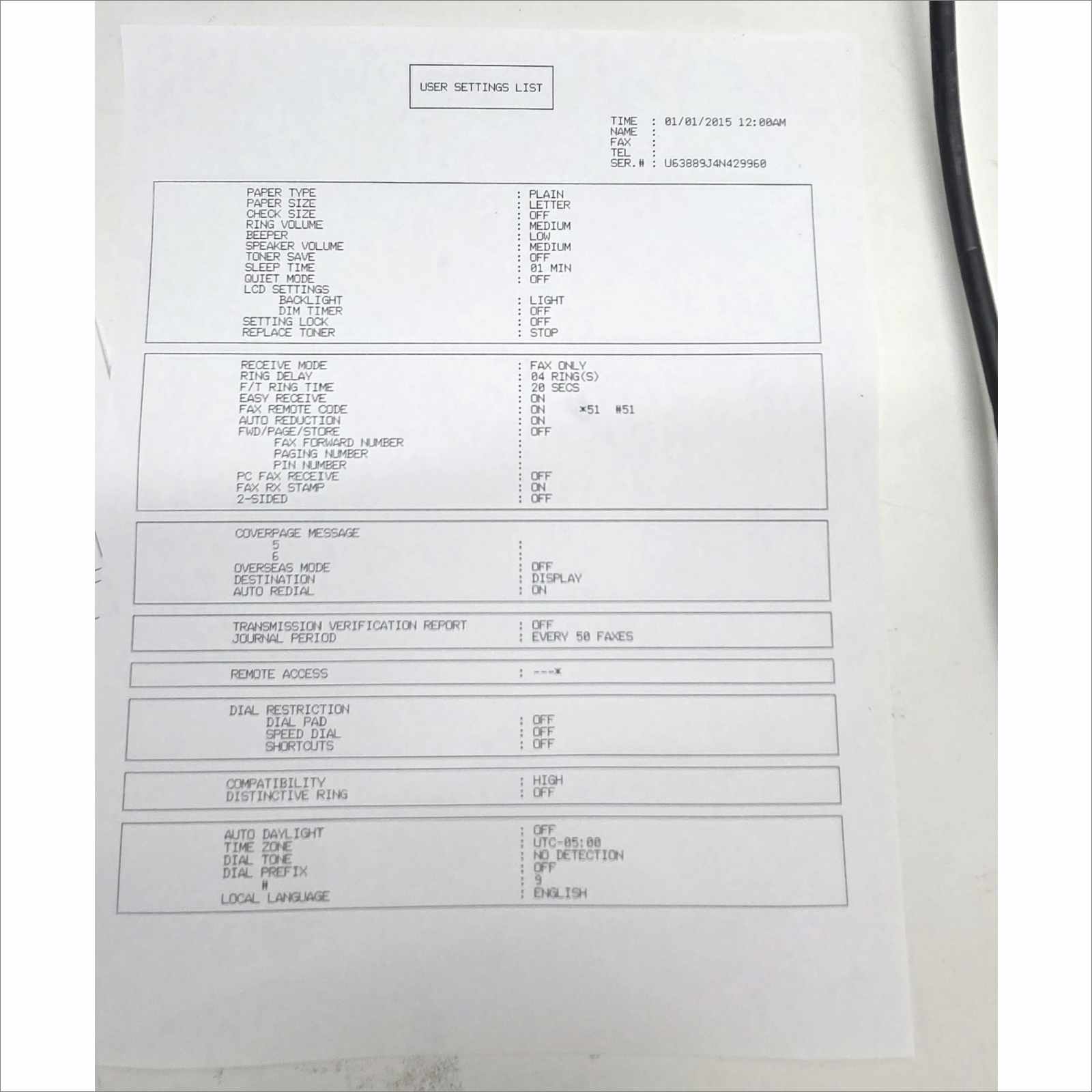 Printer in great condition tested with the following notes from our testing technician: