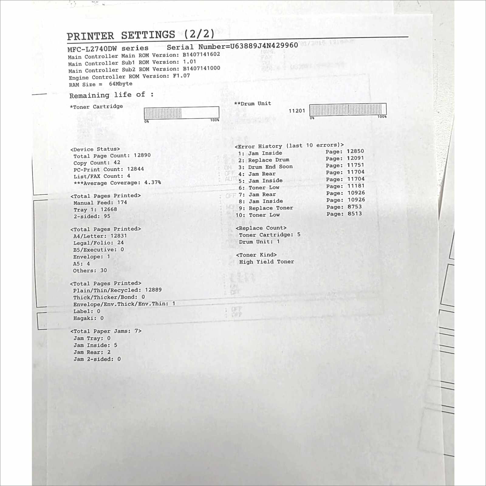 Note: The drum and toner used for printer testing can be shipped upon request, subject to availability. Since we normally send them for recycling after testing, they are not included with the printer shipment due to potential spill risk. If you wish to receive them, you must provide a prepaid shipping label.