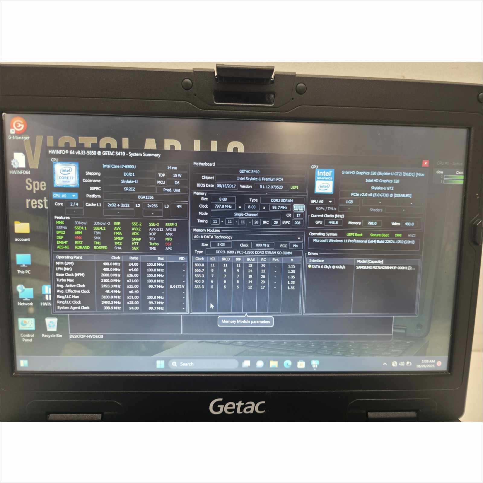 - 1x Getac S410 G1 i7 6th Gen 8GB 256GB SSD Win 11 TPM BT Rugged Notebook