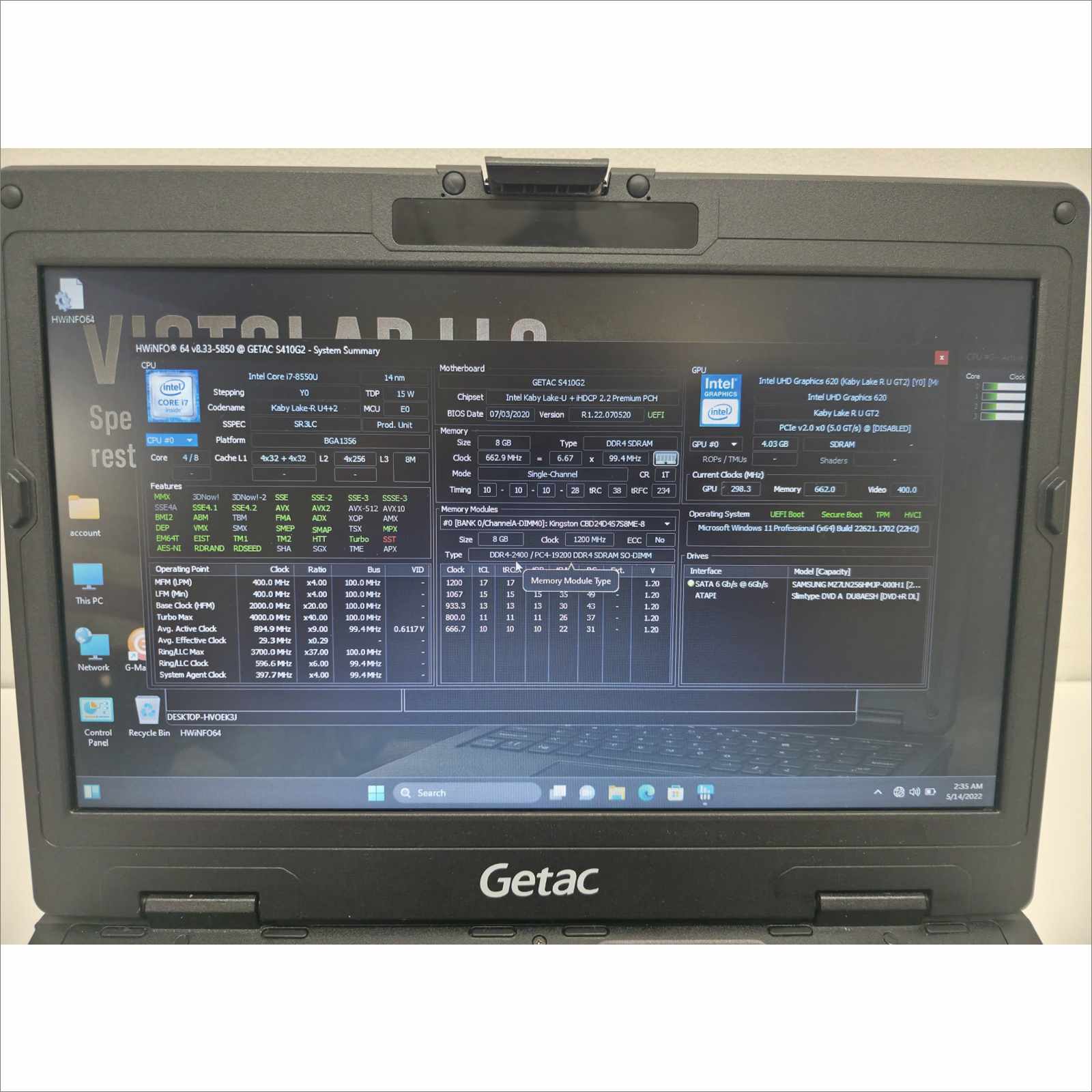 - 1x Getac S410 G2 i7 8th Gen 8GB 256GB SSD Win 11 TPM BT Rugged Notebook