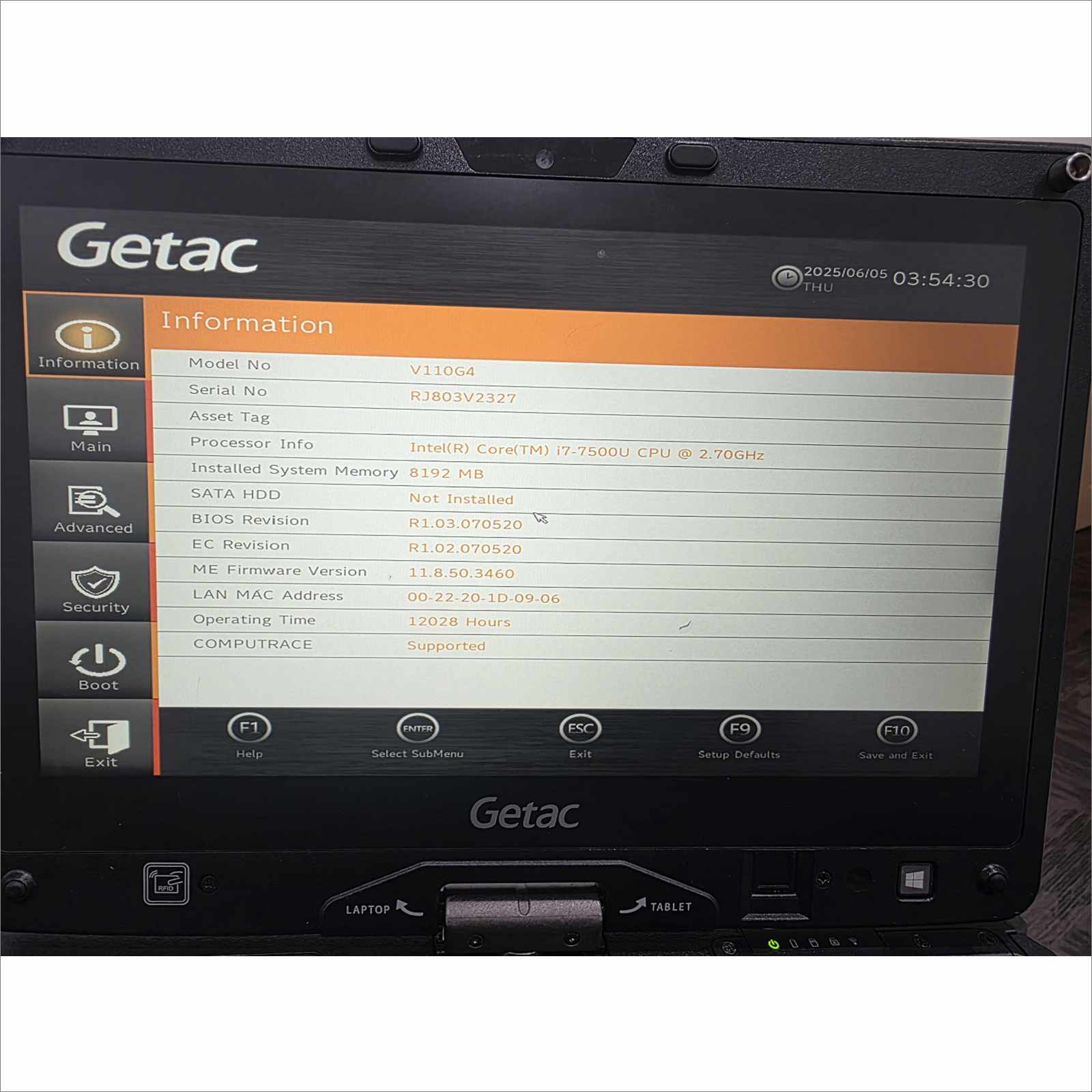 • Model: Getac V110G4 Rugged Convertible Laptop