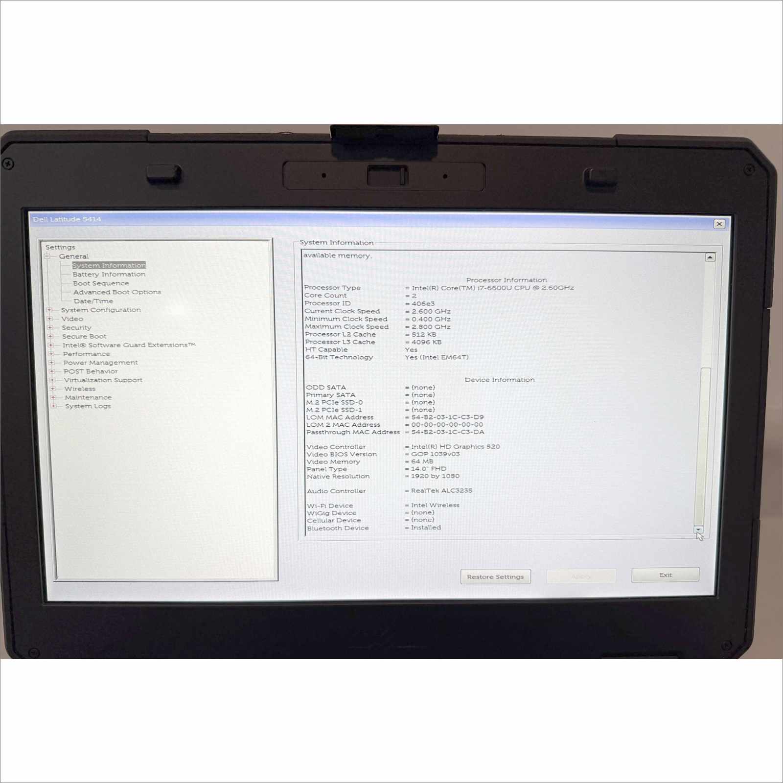 This is a lot of 2x Dell Latitude 14 Rugged 5414 laptops, both equipped with Intel Core i7-6600U @ 2.6GHz, 8GB RAM, and FHD Touchscreen displays. Units are in fair cosmetic condition with normal wear from prior rugged use.