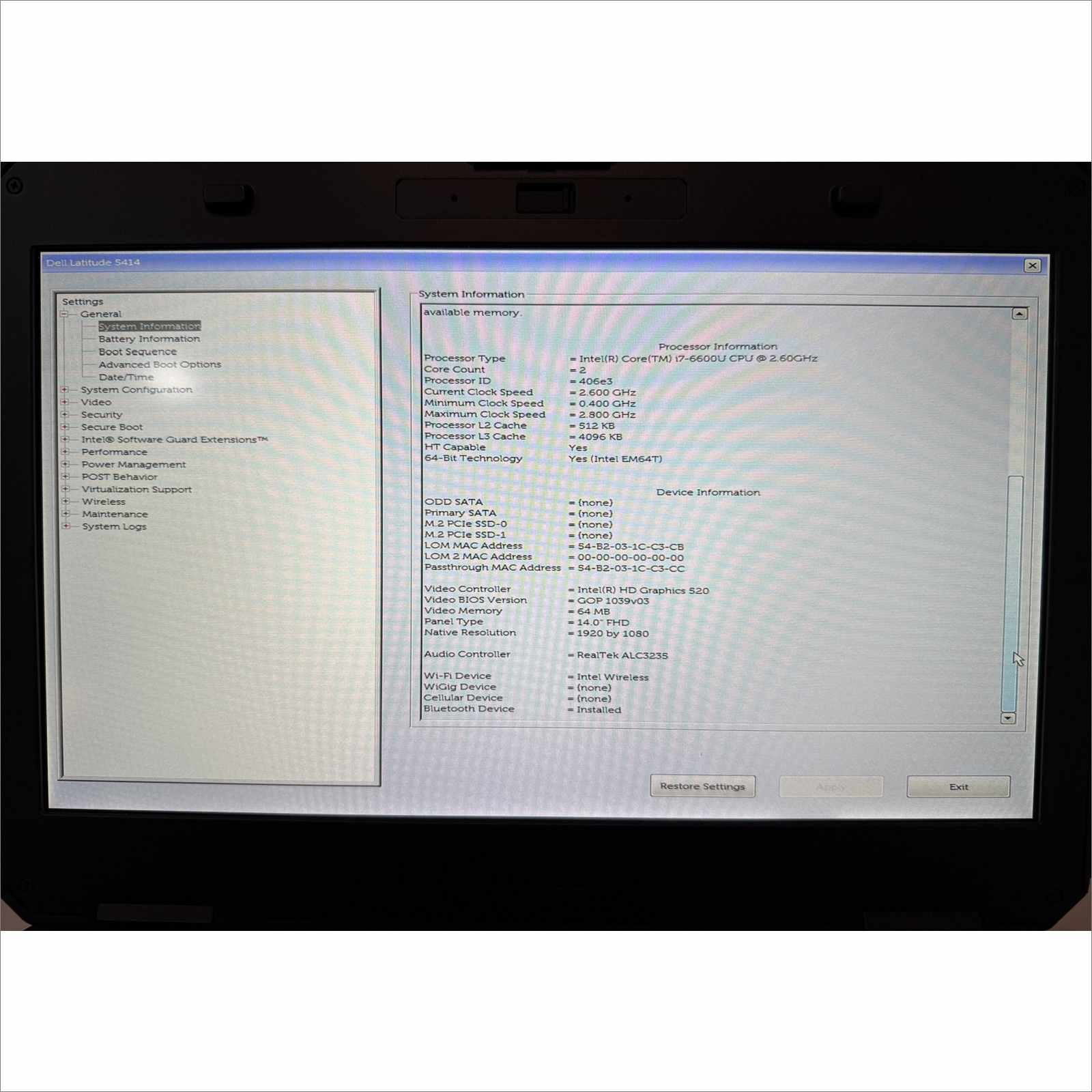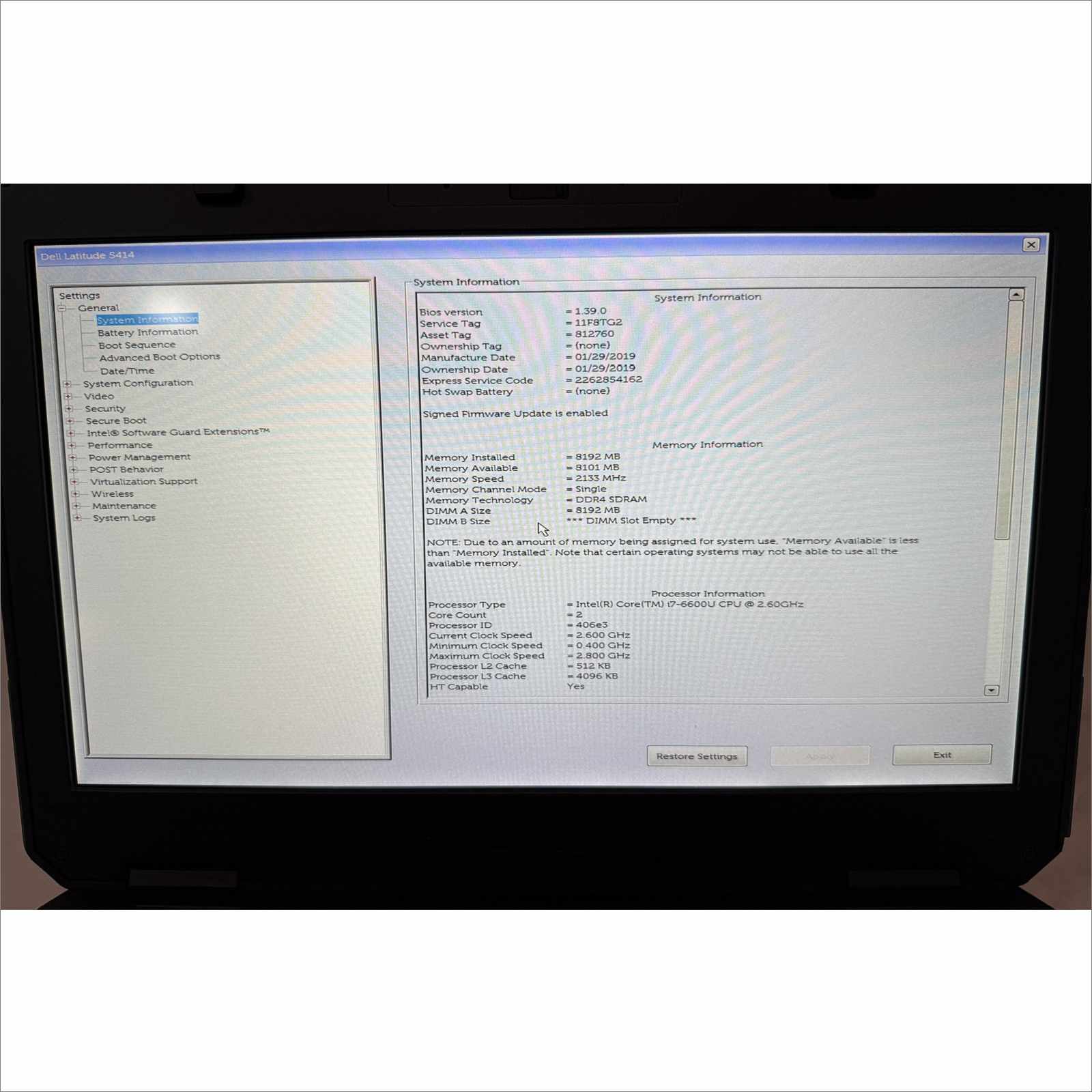 • SN# 11F8TG2 – i7-6600U @ 2.6GHz, 8GB RAM, FHD Touchscreen, Backlit Keyboard, Fingerprint Reader, WiFi, Bluetooth, Intel HD Graphics 520, No HDD, No Caddy, No Battery