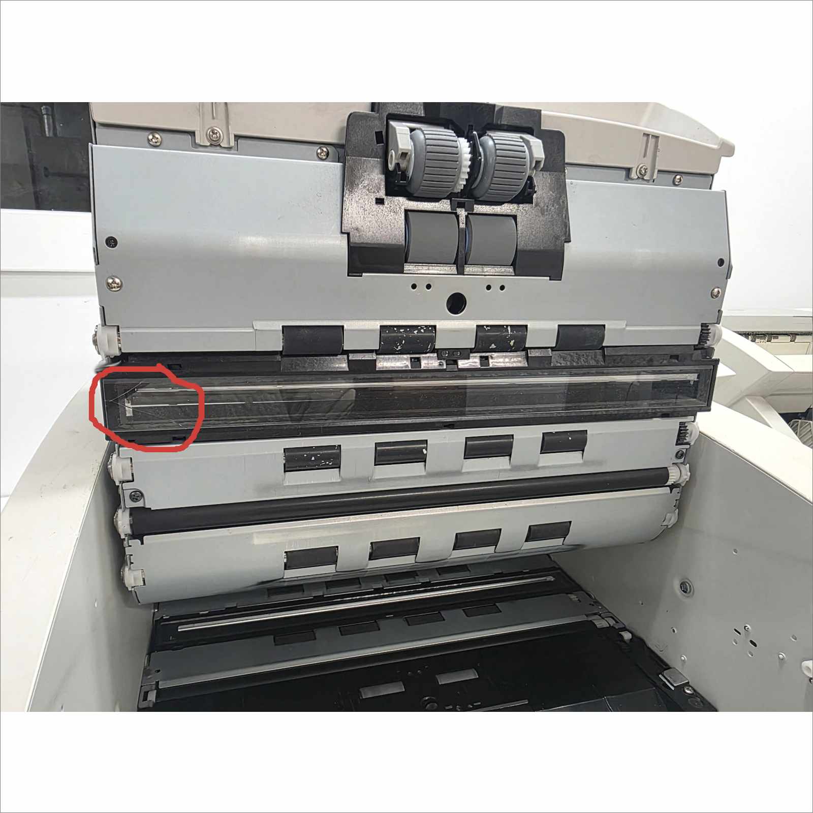 - the DR-7550C have a small crack on the top glass as pictured and highlighted (replacement part around 10$ well improve scan quality)