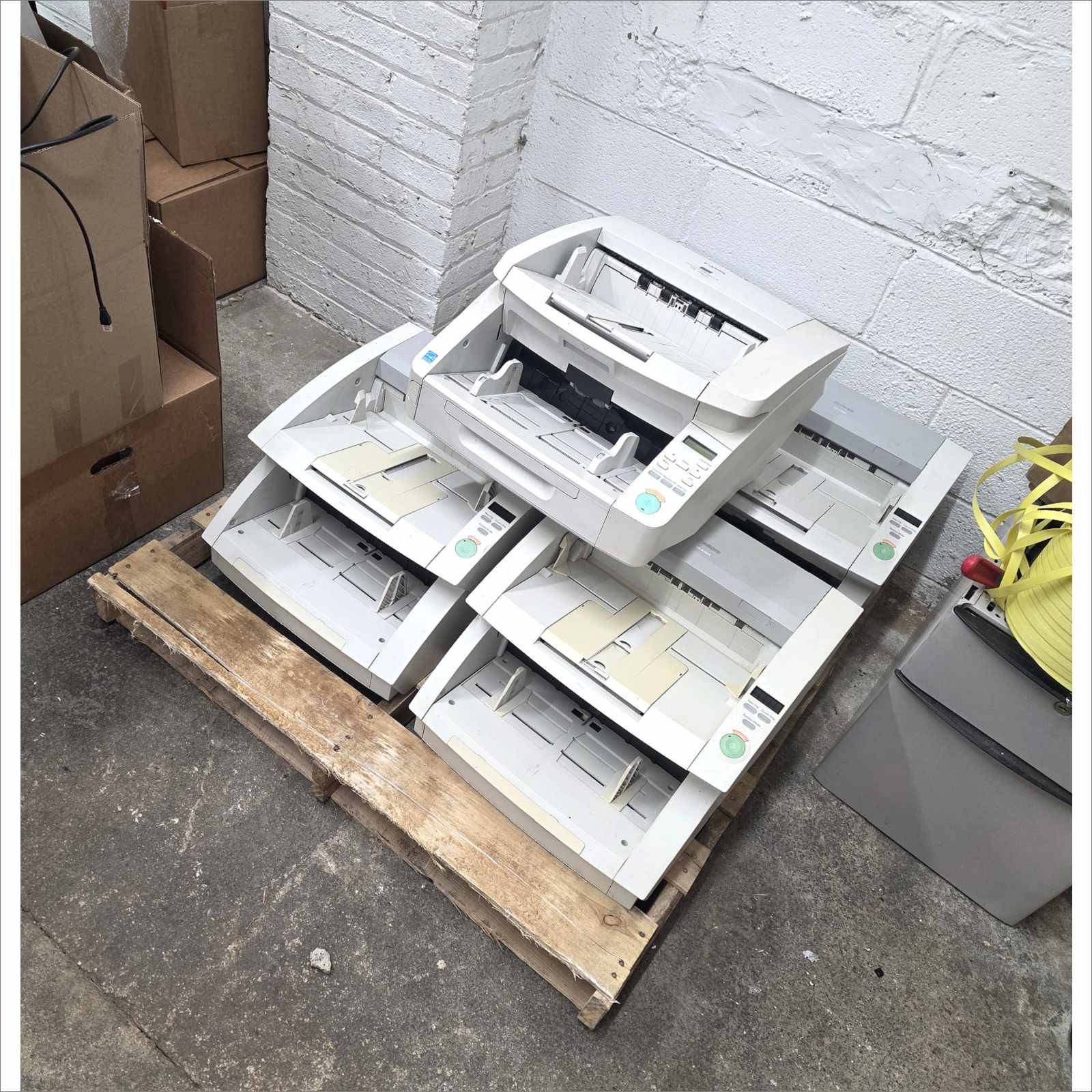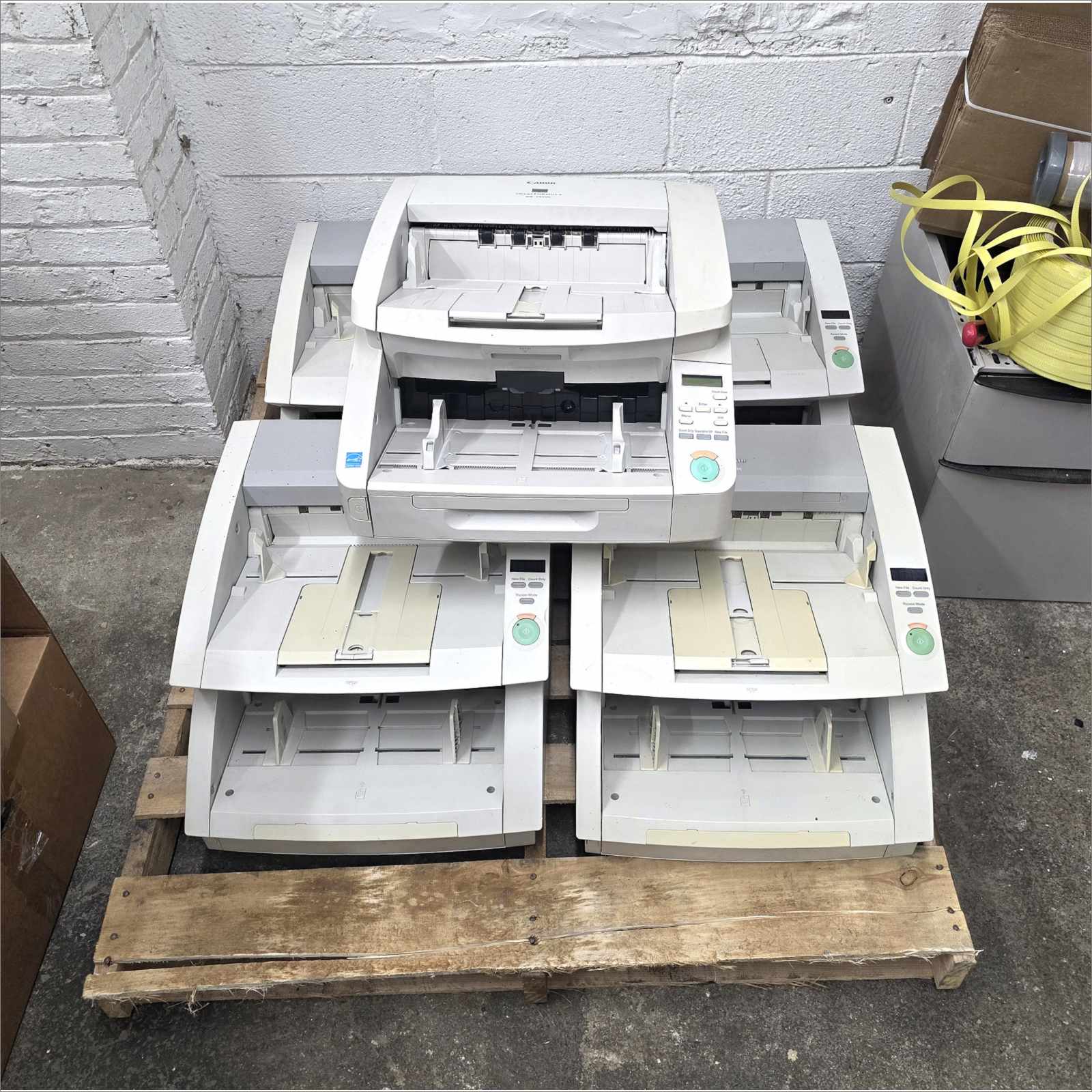 This Lot of 5x Canon imageFORMULA Pass-Through Scanners (DR-9080C / DR-7550C) is guaranteed to be in good working and physical condition with minor scratches, scuffing, and signs of normal office use.