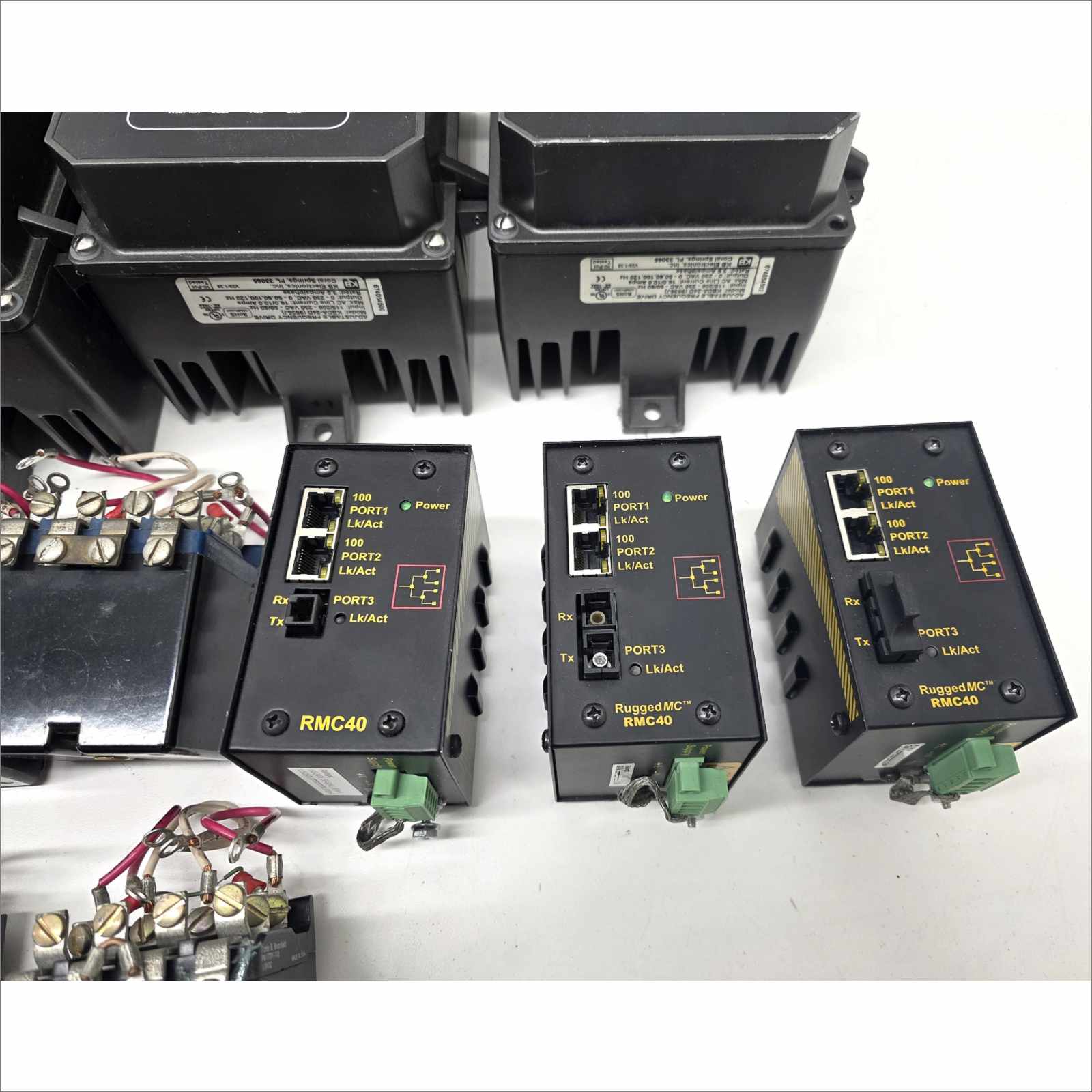 This Lot of Industrial Electronics – KB Genesis Adjustable Frequency Drives, RuggedCom, Potter & Brumfield, Power Supplies, and more is listed for parts. physically the items show typical signs of use such as scratches, scuffing, and handling wear.