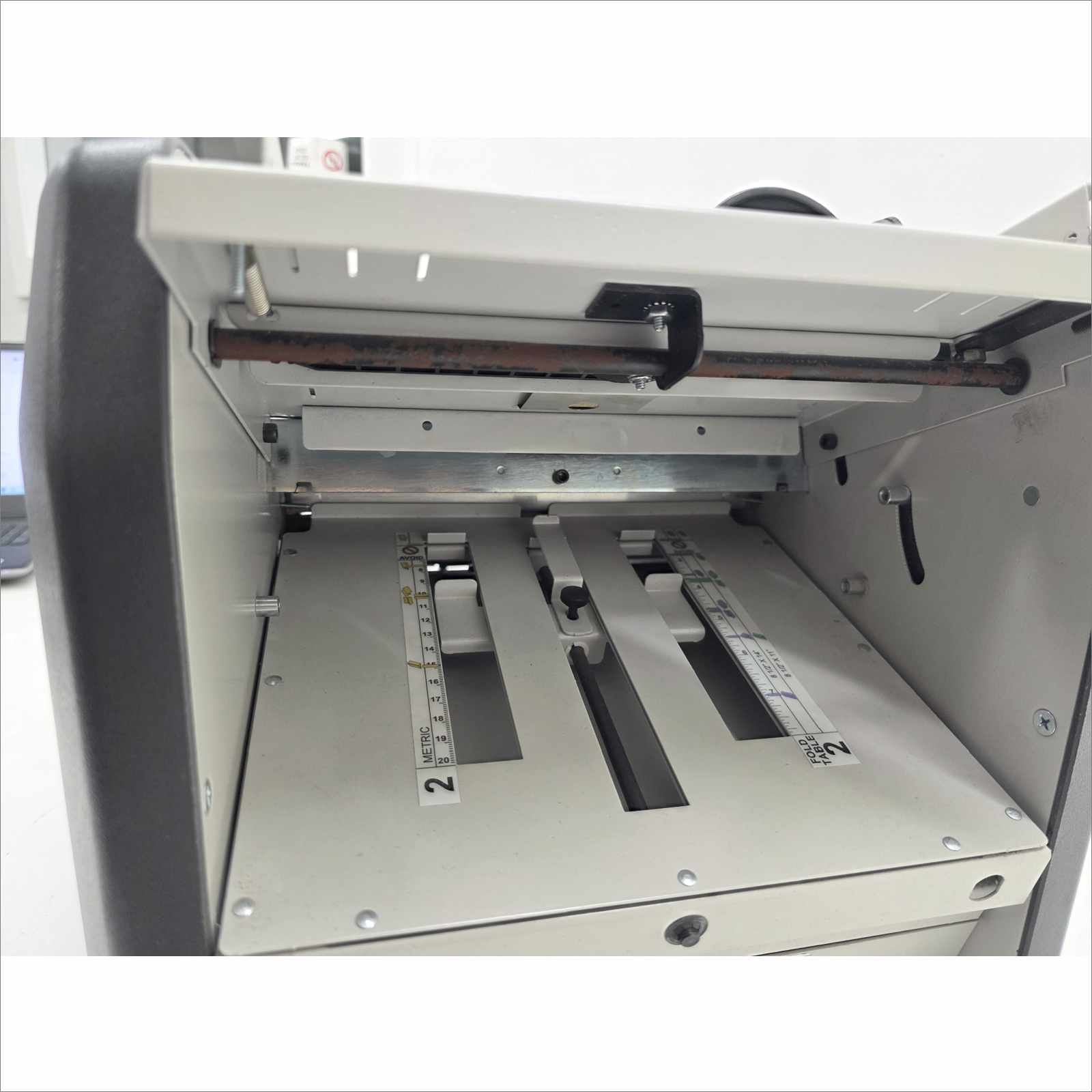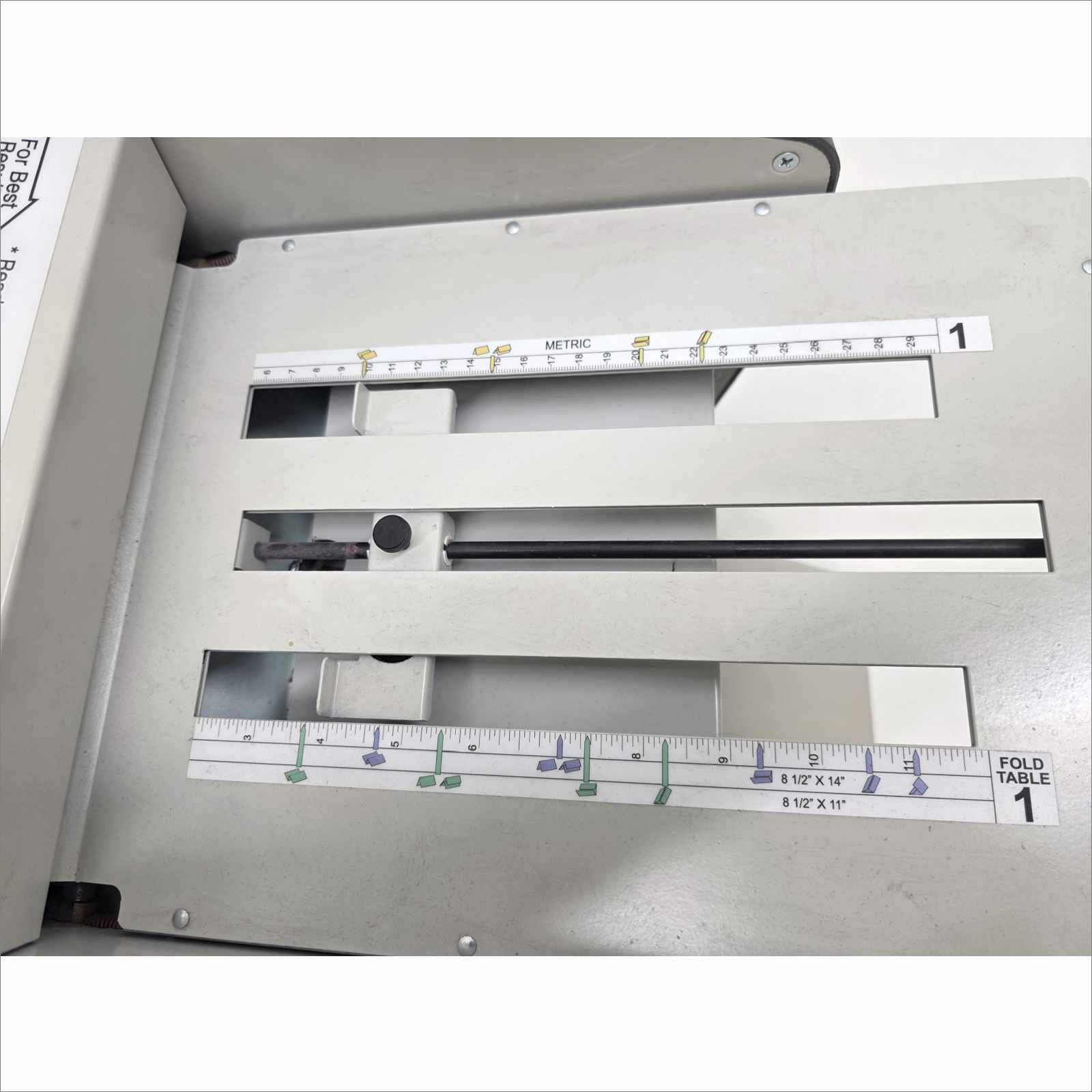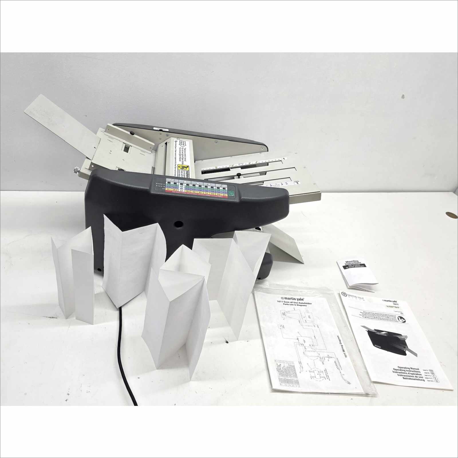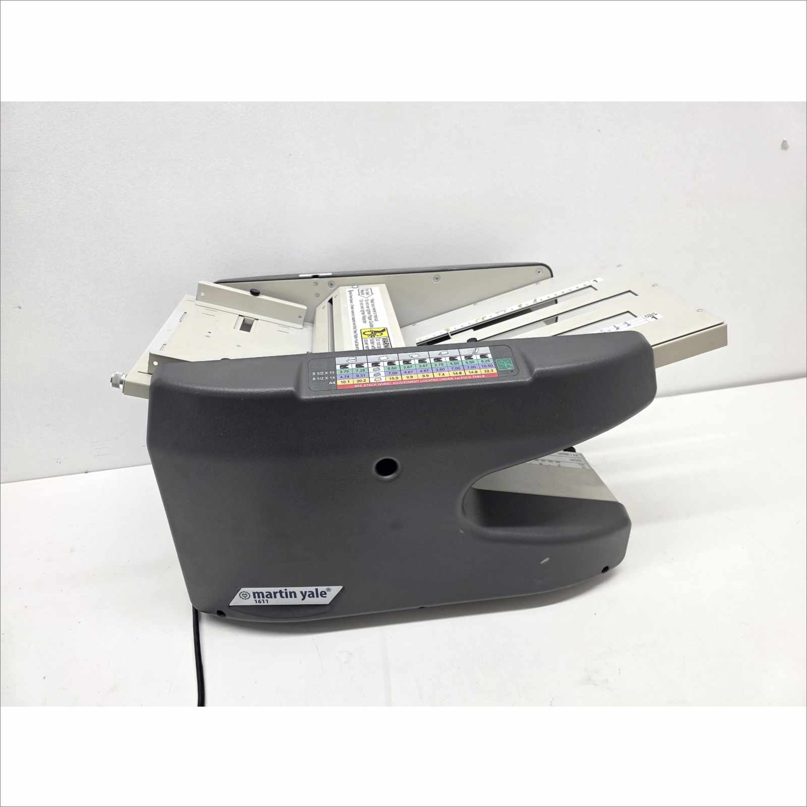 This Martin Yale Industries Model 1611 Office Paper Folder is guaranteed to be in good working and physical condition with minor scratches, scuffing, and signs of normal office use.