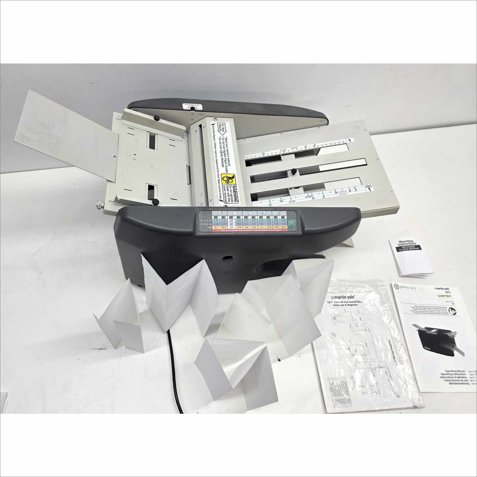 • 1x Martin Yale Industries Model 1611 Paper Folder – 8.5″ x 14″ Capacity